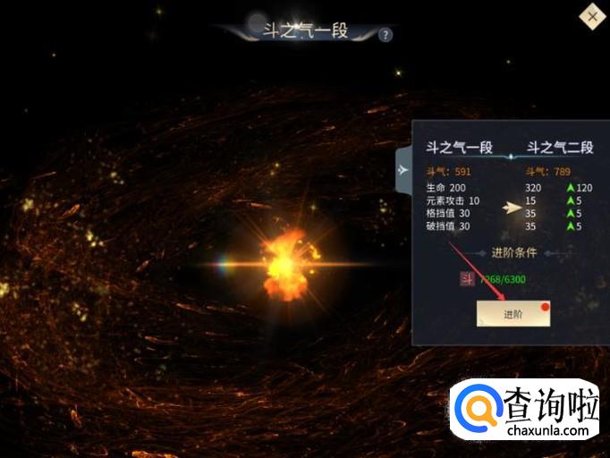 此时在页面右侧会弹出一个对话框,当玩家满足进阶的条件后,点击【进阶】功能,这样就完成斗阶的进阶了。
