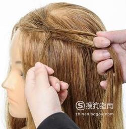 在向斜后下方编发的时候从左右两边挑出小束头发加入编发。