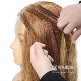 将头发三七或者四六分,从七或者六的这边沿着分界线取出三小束头发。