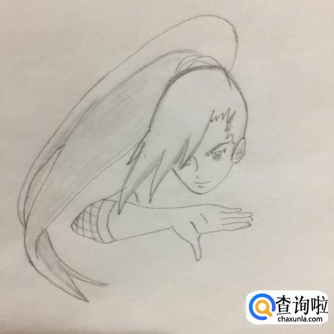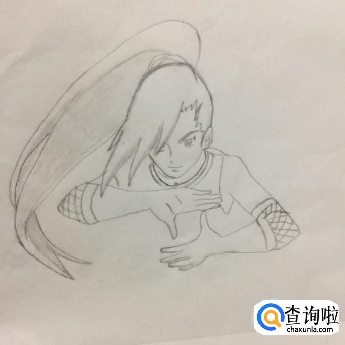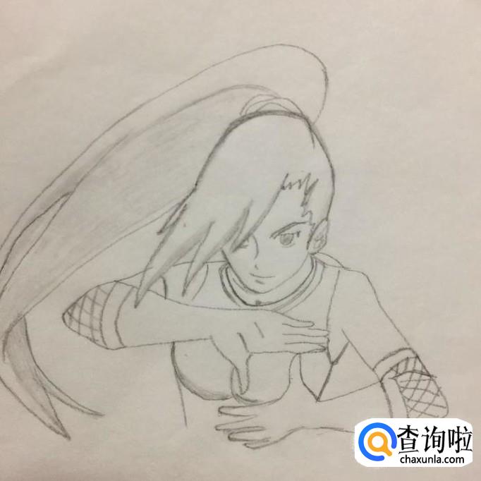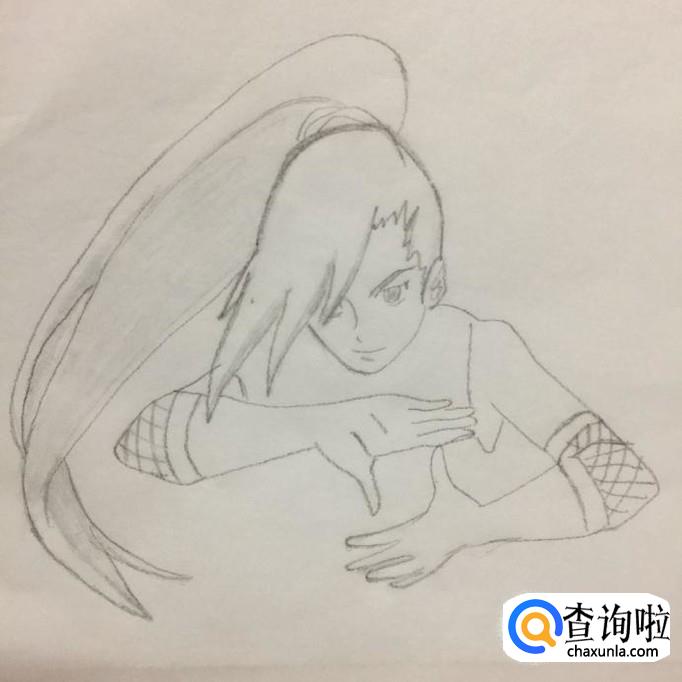 最后我们用铅笔轻轻勾勒一下井野的女性上半身的一些特点就可以了,一幅火影井野就话画好了。