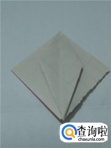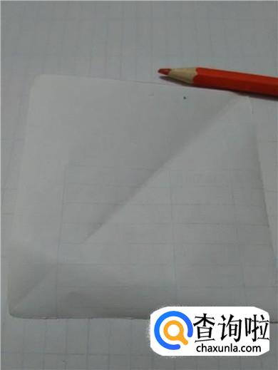 把纸打开,把上层左边的角从中间撑开,折成一个正方形。