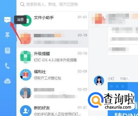 接着点击左侧的第一个消息,在这里能够接受到来自公司的一些信息,直接点击这个按钮就可以查看各类消息了,直接点击即可,这样就能查看消息内容了。