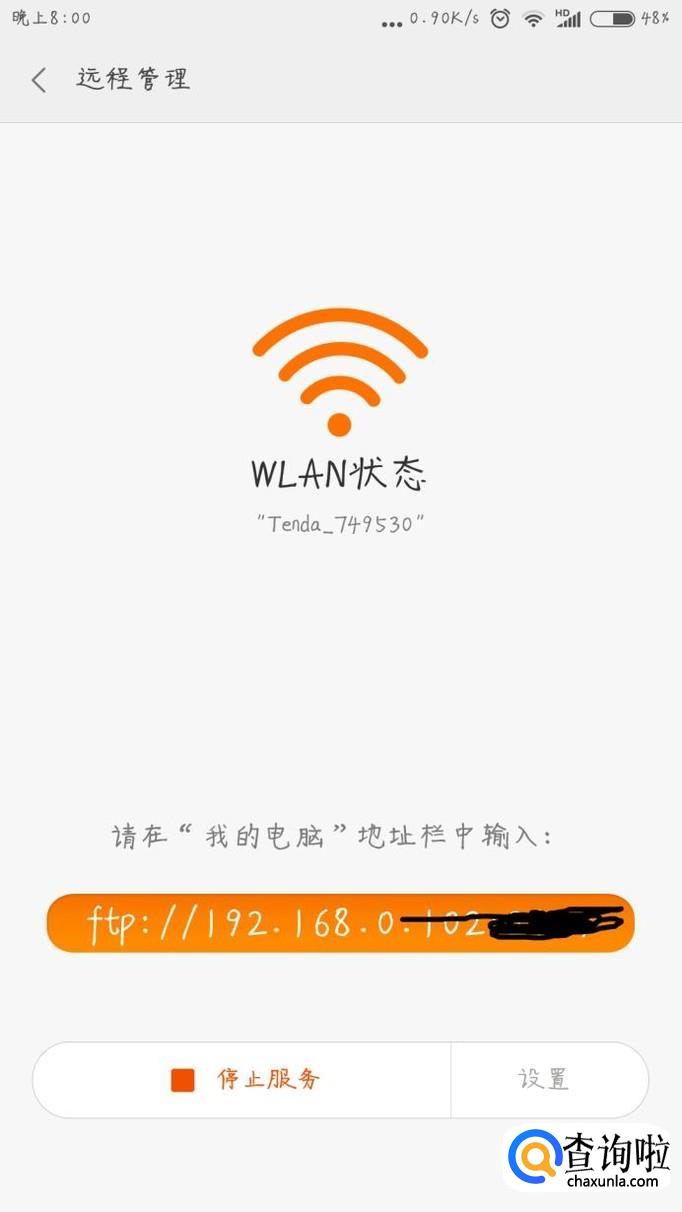 在电脑的文件资源管理地址栏中输入刚才的地址信息,回车,即可看到手机内的文件了,这样就实现了手机和电脑的连接