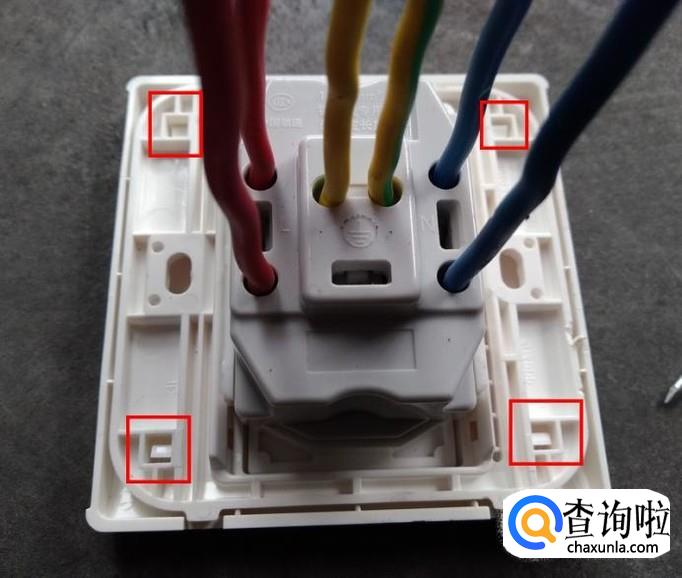 铜线都插好以后,检查一下是否松动,再将插座的外壳拆掉,外壳是由四个卡扣固定,很容易拆装;