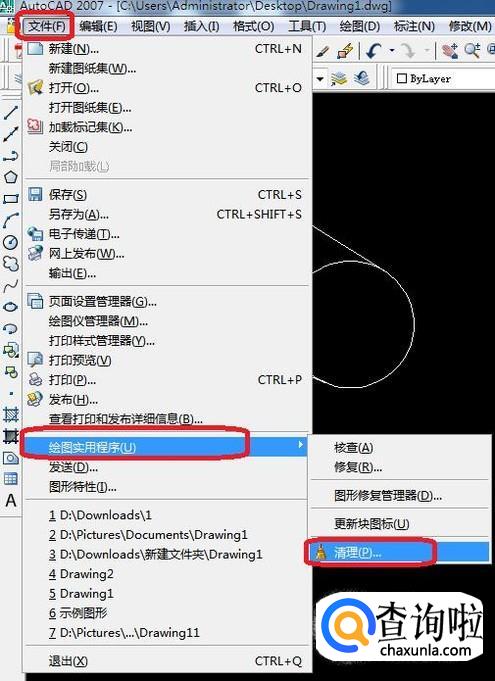 如果是清除图形中多余的块(屏幕上看不见),那么就点击“文件”,“绘图实用程序”,“清理”。