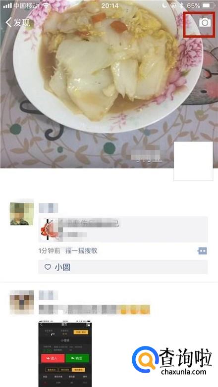 首先点击微信朋友圈右上方的相机图标,如下图所示。