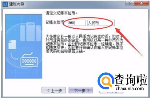 进入下一步,这里我们要定义记账本位币,你可以根据公司业务需求自行修改。钱币单位择默认为RMB。