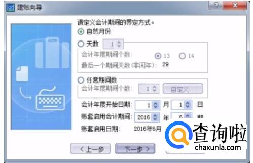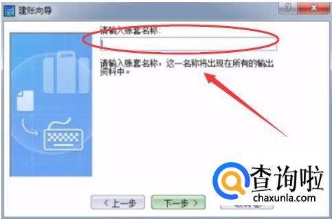 在“建账向导”界面点下一步,输入账套名称。