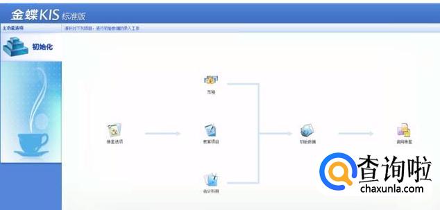 <会计年度开始日期>和<和账套启用会计期间>同样也要根据各公司实际情况选择,确定后点击下一步。此时系统进入到初始数据录入的界面,完成账套。