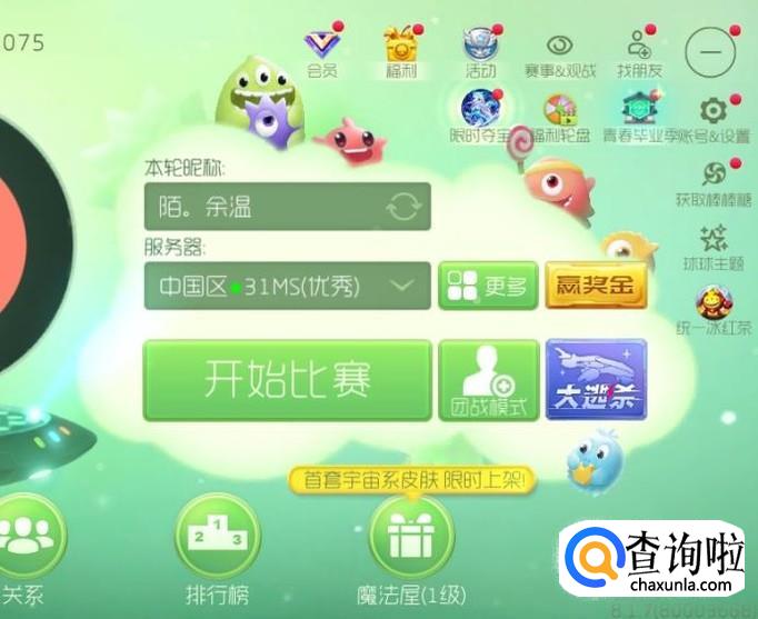 然后我们点击游戏进入游戏的主页面,然后我登陆自己的球球大作战的账号(一般是自己的电话号码)