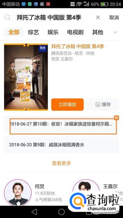 在首页的搜索栏中输入自己想要看的视频,以“拜托了冰箱”为例,观看最新一期《拜托了冰箱》。