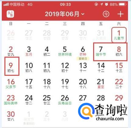 端午节6月7日刚好在周五,可以连着8日和9日的周末连休。