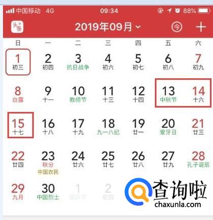 2019年很多节假日都在周五哦,省去了调休,到9月13日中秋节又是在周五,可以连着14日和15日的周末连休。