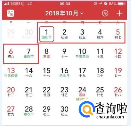 2019年最后一个节假日国庆节,从10月1日放假到10月7日,其中1日到3日是法定节假日哦。