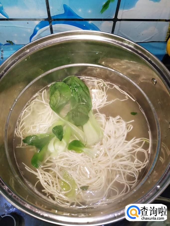 锅中烧开水,水开后将面条和青菜,倒入锅中煮熟,捞入碗中,搅拌均匀,再将之前切好的黄瓜丝放在上面。