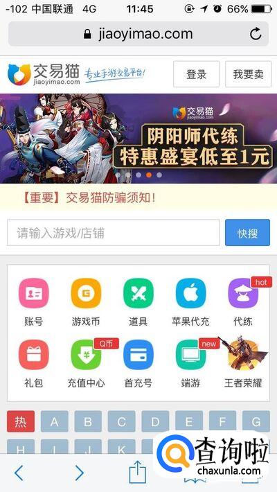我们先下载一个交易猫app,然后进入该app的页面并且登陆账号。