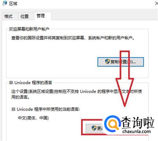 再点击下方的“更改系统区域设置”。