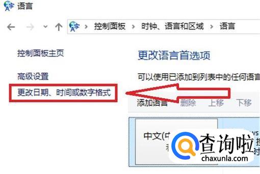 然后点击左侧的“更改日期、时间或数字格式”。