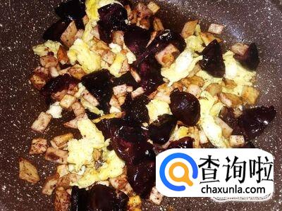 中火爆炒1分钟左右,然后鸡蛋回锅。