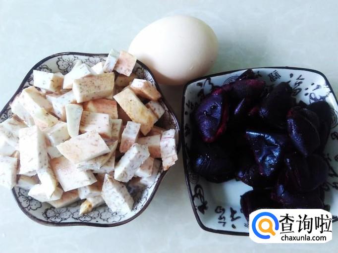 首先把芋头去皮然后切成小丁,榄角、鸡蛋准备好。
