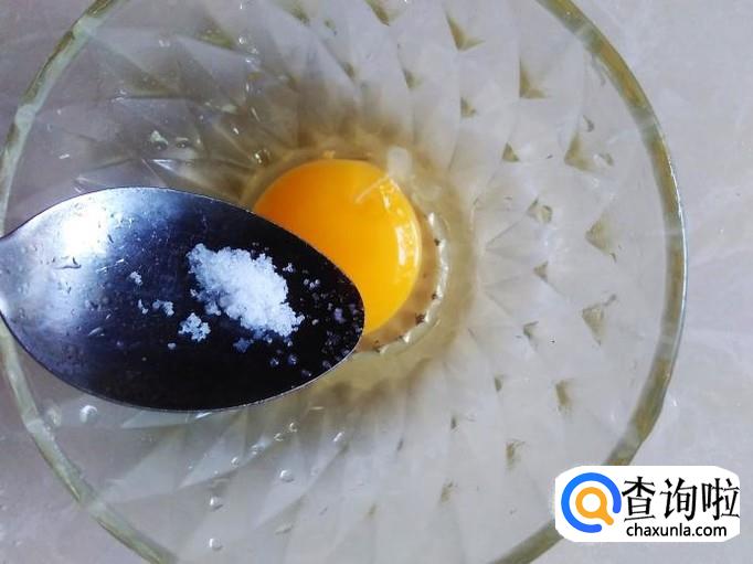 鸡蛋打到碗里,加适量的盐搅拌均匀。