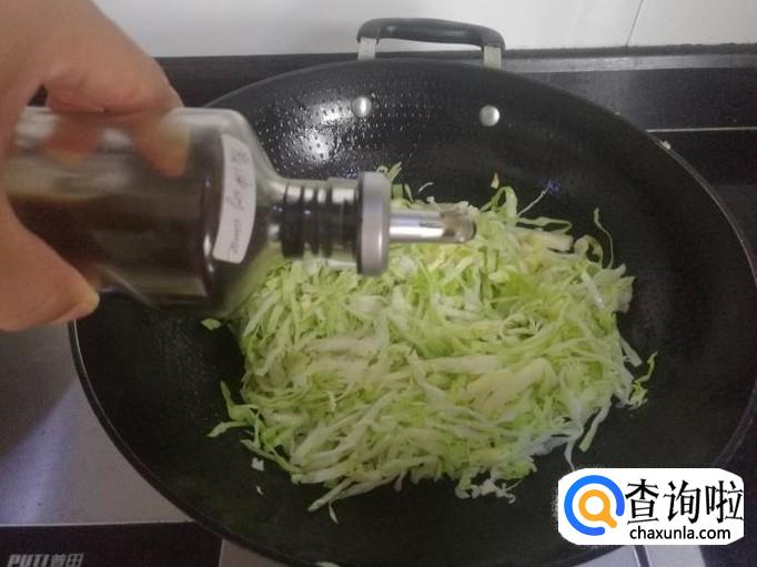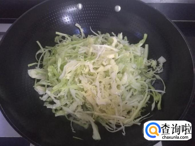 起油锅,什么也不需要放,如果你想口味更丰富一点或者重一点,可以加点干辣椒或者蒜泥。待油烧到八成热的时候,倒入牛心菜丝。