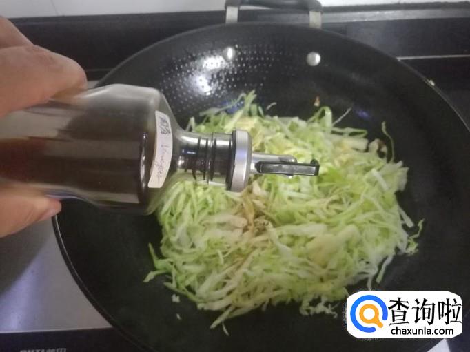 再加入少许陈醋,让牛心菜丝迅速软化,去掉牛心菜的蔬菜涩味,且口味更丰富。