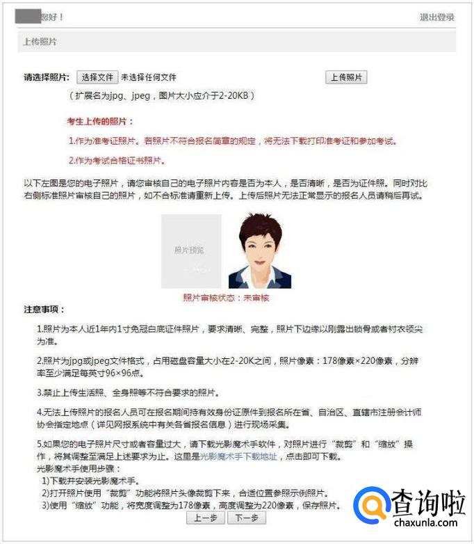 首先准备一张近一年的1寸电子档免冠照,照片要完整清晰,下面要露出锁骨或衬衣领尖。不能使用生活照,全身照。