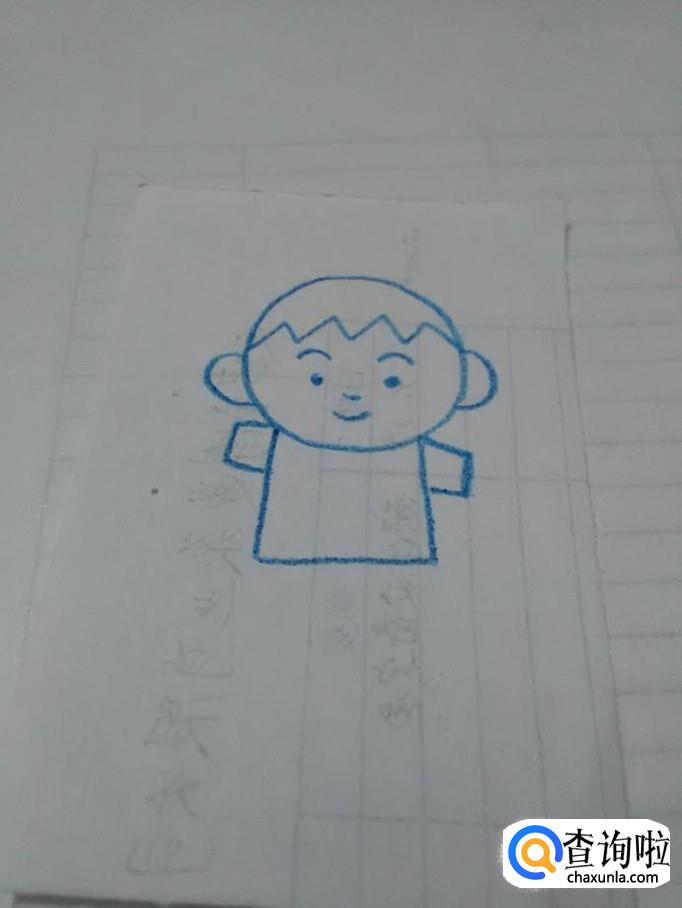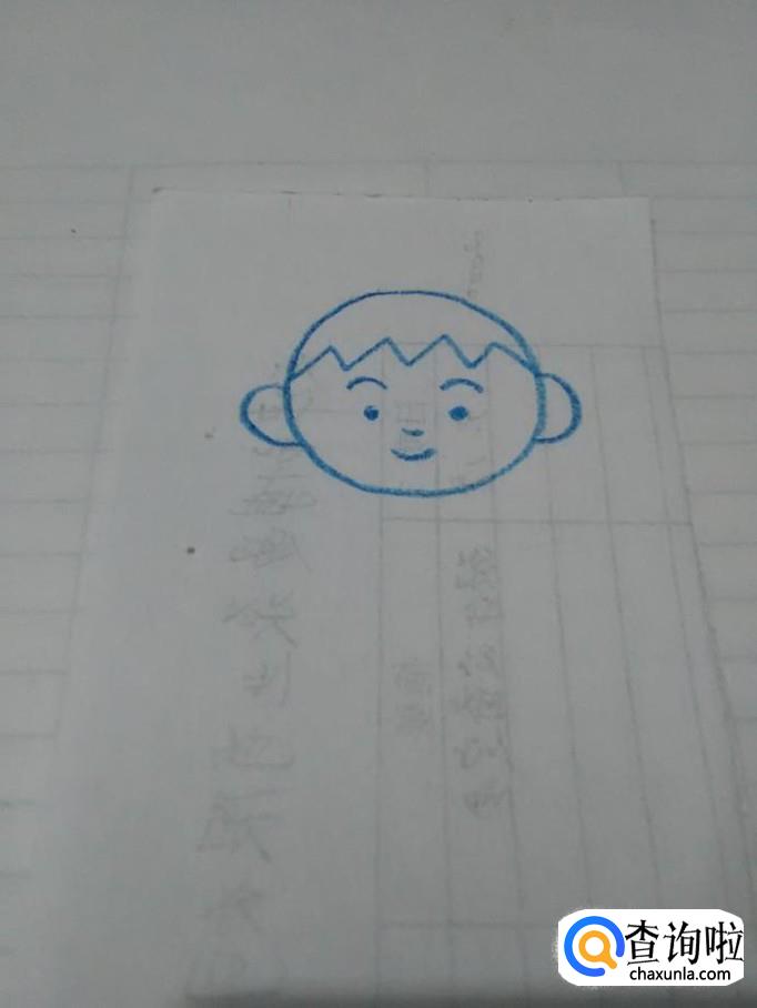 先用笔在纸上画一个圆形,表示男孩的头。