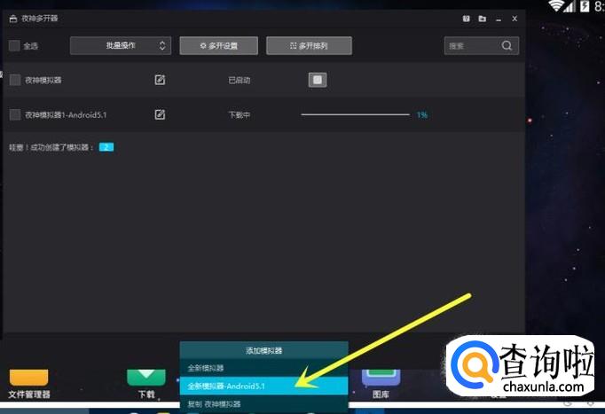 首先我们打开夜神安卓模拟器,然后点击 多开模拟器