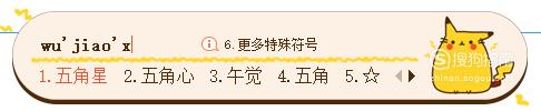 切换为搜狗输入法,打字输入五角星拼音“wujiaoxing”即可打出。