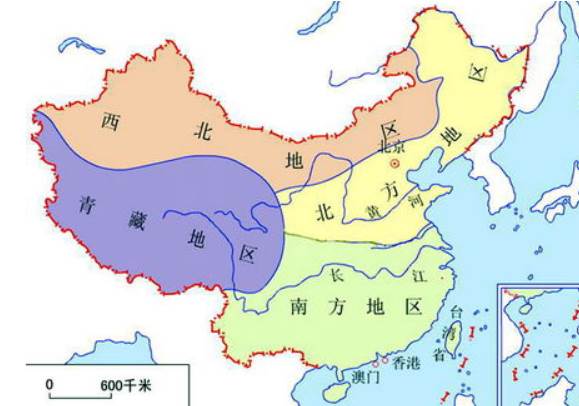 中国地图四大地区划分是:北方地区、南方地区、西北地区和青藏地区。大致分界线为:秦岭、淮河分界线;大兴安岭-阴山-贺兰山分界线;第一级阶梯和第二级阶梯的分界线。