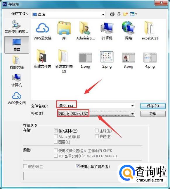 点击存储为选项在弹出的对话框内给图片命个名字,然后设置格式为png点击确定我们就得到了png图片了,如图所示: