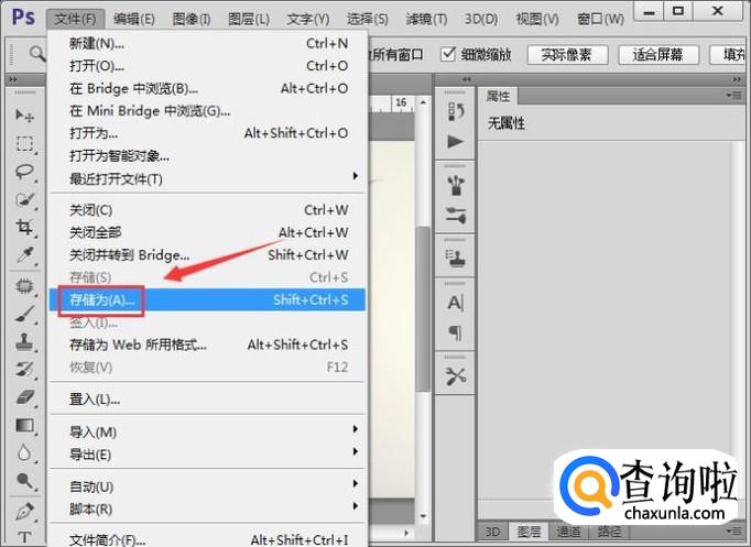 我们在ps的菜单那里找到找到文件选项,点击该选项在其下拉菜单那里找到存储为选项,如图所示:
