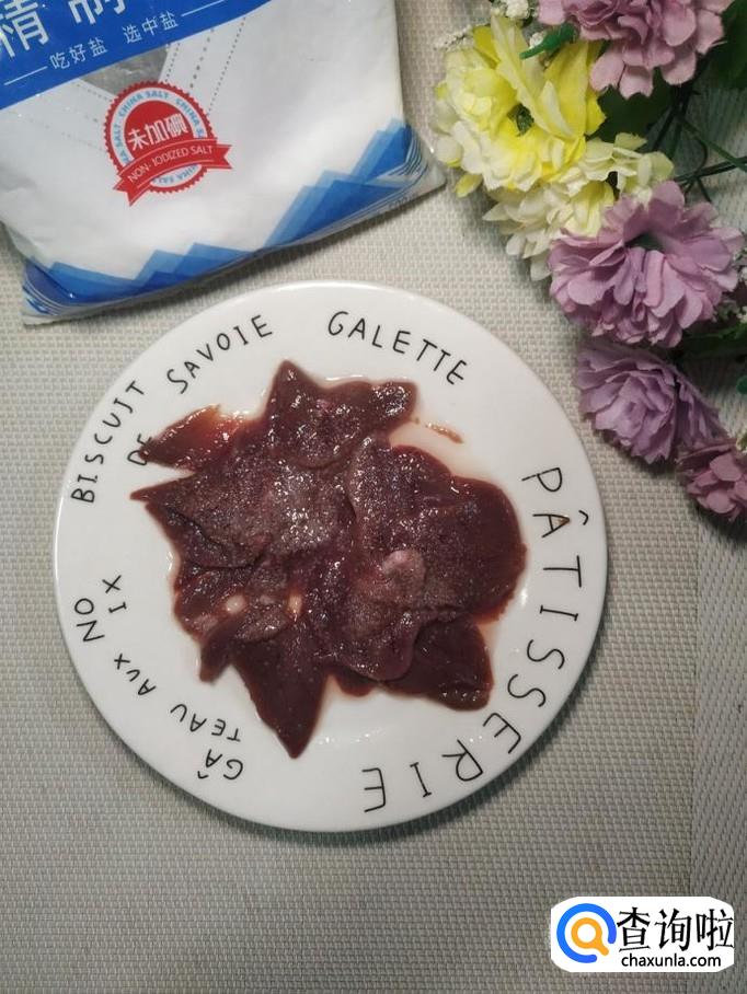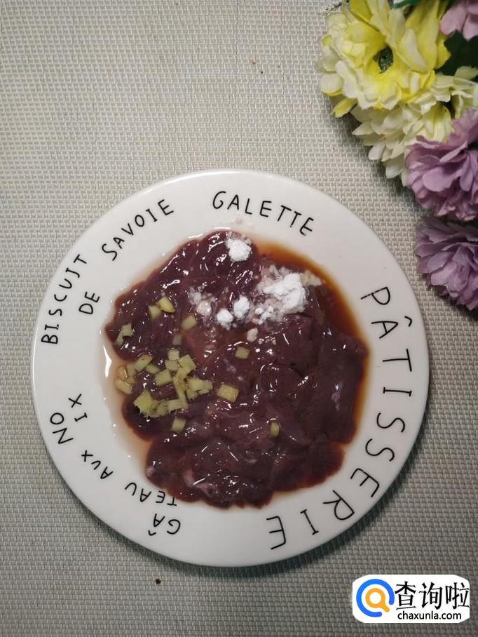准备适量的猪肝,用清水泡一个小时左右,然后切成片儿。撒入适量盐,再腌一会儿,洗去盐分,再撒上姜末,五香粉,生抽,料酒,淀粉腌制15分钟左右。