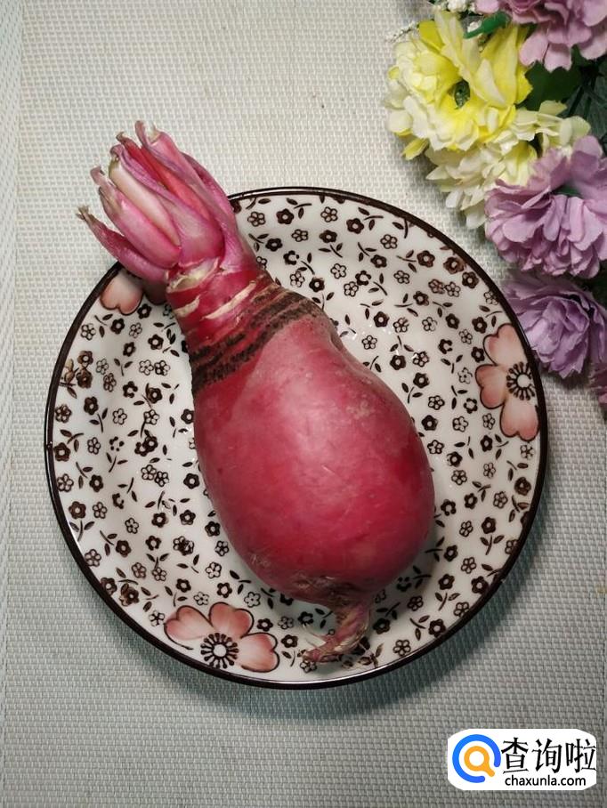 再准备适量新鲜的红皮萝卜,洗净后,不用去皮,切成滚刀块,放入锅中。红皮萝卜的皮也非常营养。