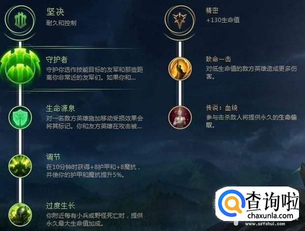 如果你打野是想保证续航,也就是说出肉玩法的话,主符文系列就要佩戴坚决、不灭之握、生命源泉、钢铁皮肤以及复苏之风了。