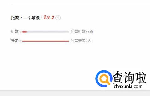 这个界面你就会发现我们只要听歌数量达到一定的数量并且登录天数也足够就会自动升到下一级了。你学会了吗?赶快动手试一试吧。