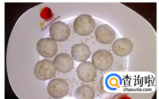 把糯米粉搅拌成有疙瘩状,再掺一点水就可以不用添加水了,这个时候在继续搅拌就行。搅拌好之后,成了一个大面团。这个时候就可以搓小团子了。搓好了小团子,把小团子表面滚一圈芝麻就可以了。