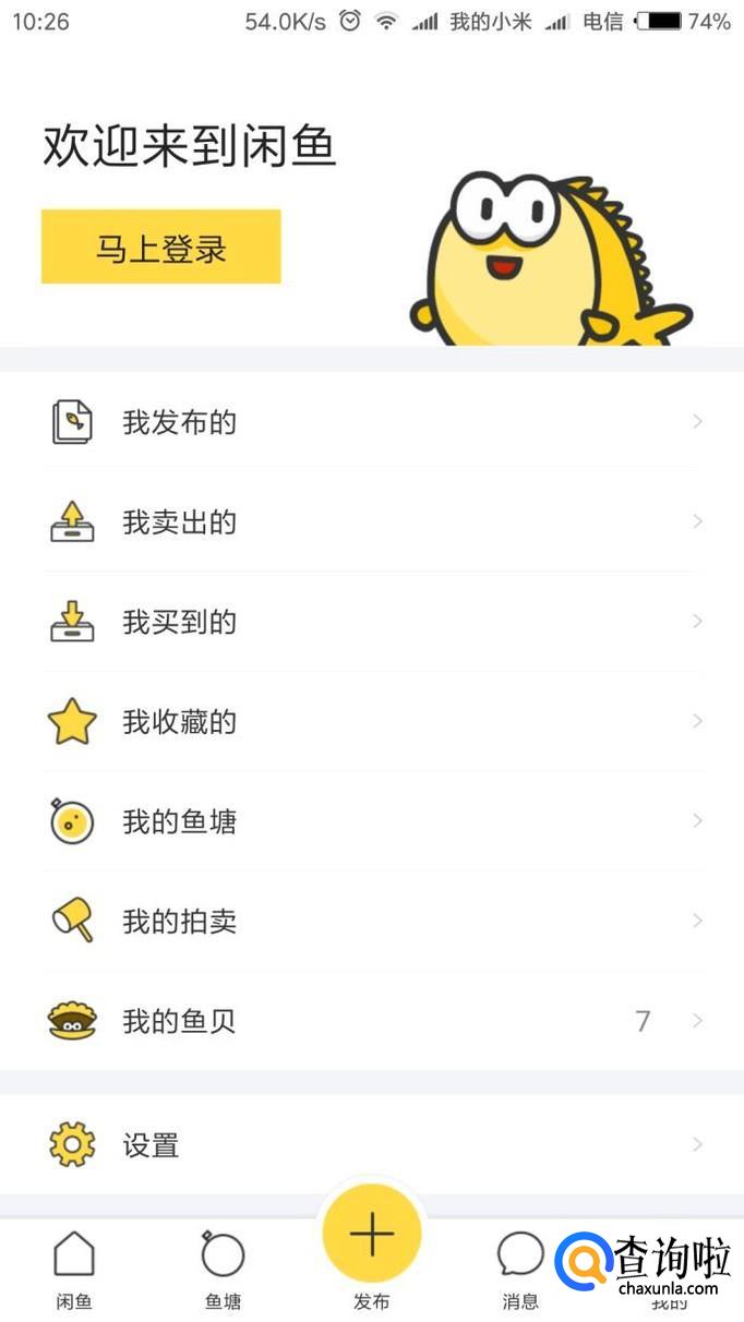官网下载闲鱼APP,打开以后出现这个页面,点击上方的“马上登录”,输入自己的支付宝或者淘宝号码进行登录;