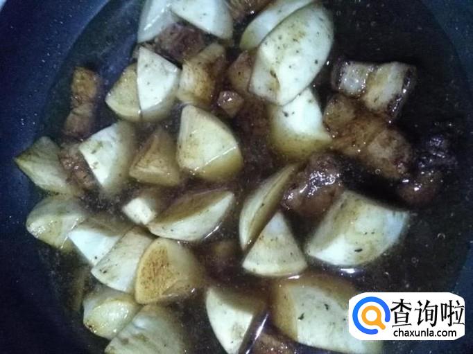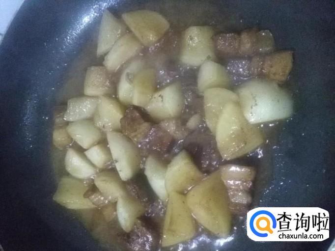 锅烧热,将猪肉放入锅中煸炒出油脂