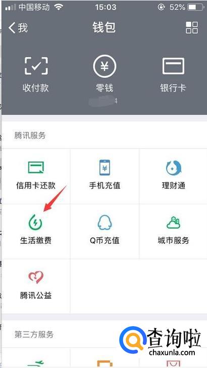 接着在钱包的功能里面点击第四个生活缴费的选项。