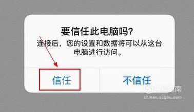将苹果手机连接到电脑上,并且在手机上点击信任。