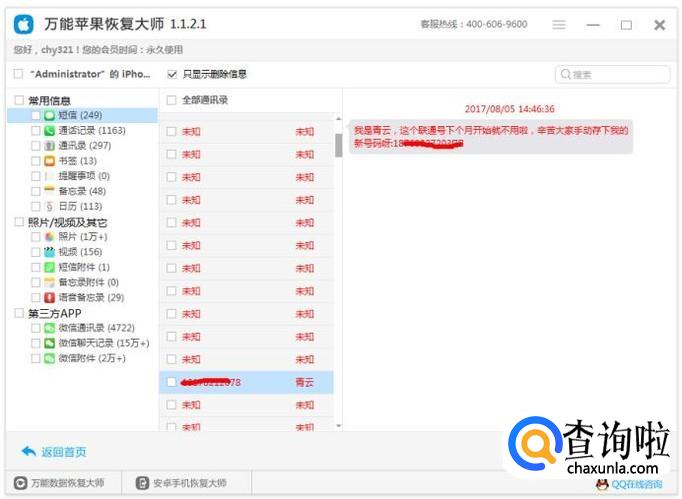 扫描结束后,点击左侧的短信就可以查看具体的短信内容了。