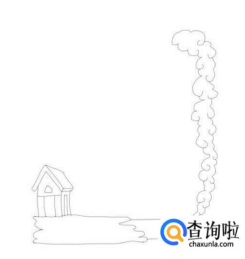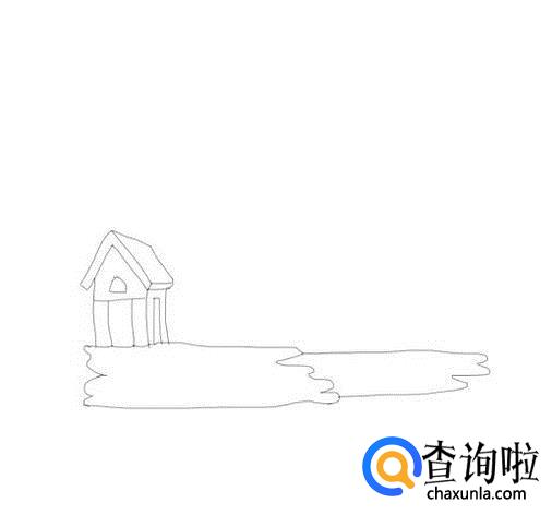 再在地面的左侧位置画出一座小房子,并在房子上面画出门和窗户,如图所示: