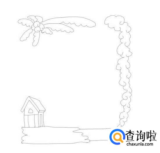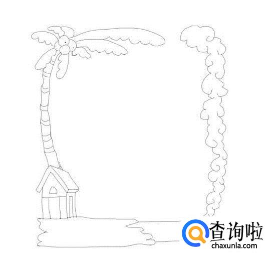 再在椰子的下面画出椰子树的树干,然后在上面画出纹理线,这样我们的手抄报边框就画好了,如图所示: