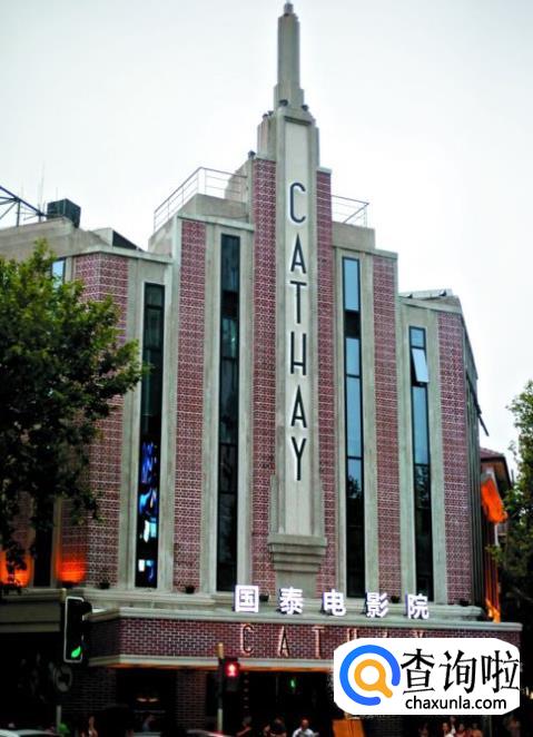 国泰大戏院:国泰电影院原名国泰大戏院(CATHAY THEATRE),建于1930年,由鸿达洋行设计,钢筋混凝土结构,外墙采用紫酱红的泰山砖,白色嵌缝,属典型的装饰艺术派风格,1932年1月1日,国泰大戏院正式对外营业。当天登在《申报》上的广告用语是:“富丽宏壮执上海电影院之牛耳,精致舒适集现代科学化之大成”。1949年以后,更名为国泰电影院,“文革”期间曾经一度改名人民电影院。1994年被上海市人民政府命名为优秀历史建筑。