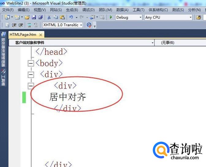 先打开visual studio软件,然后在div中随意写上文字,如下图所示: