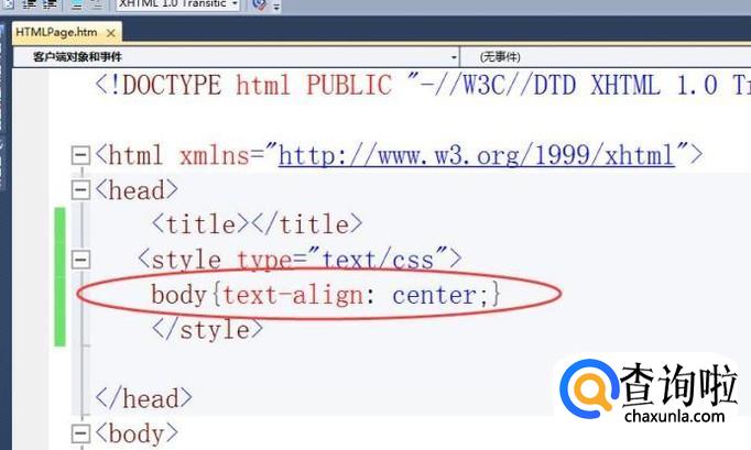 然后在style中写上水平居中代码body{text-align: center;},如下图所示: