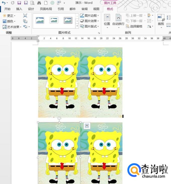 按住“Ctrl+shift+Alt键”拖动图片,就能保证图片在垂直或水平角度进行复制,如图,然后直接打印出来即可。